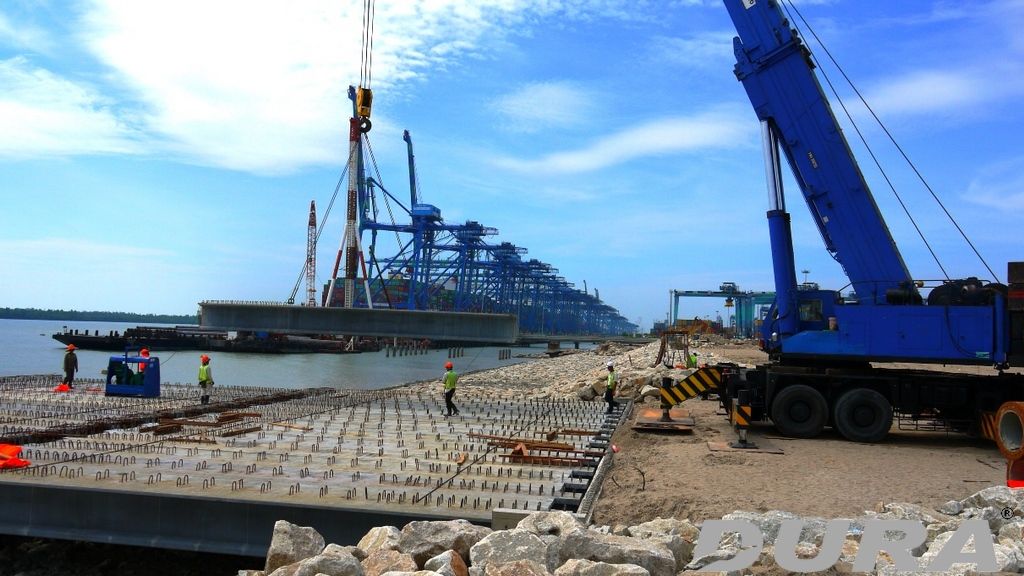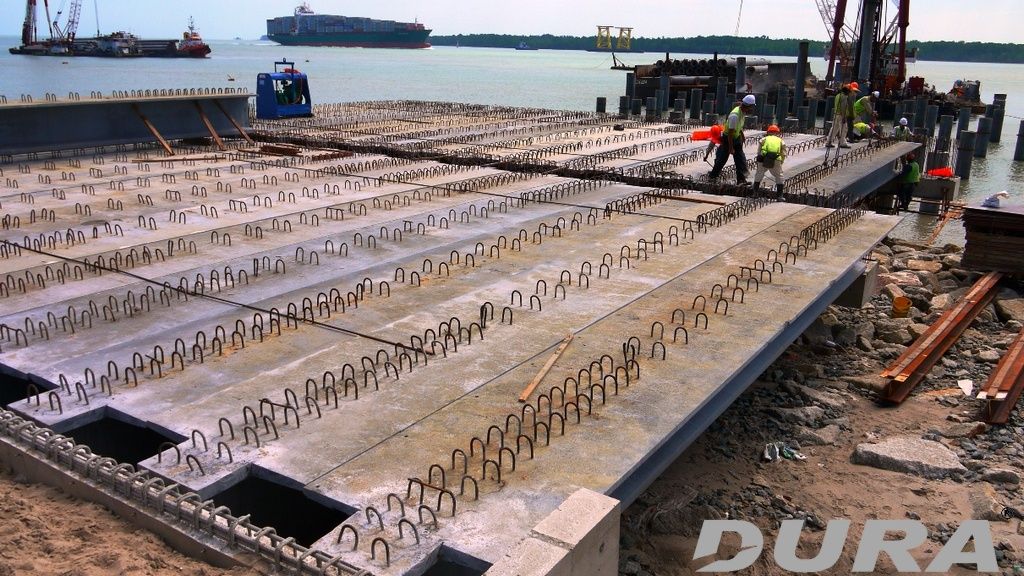 5 spans of 13m long x 22.5m wide & 1 span 13m long x 42m wide DURA beam composite RC deck system.